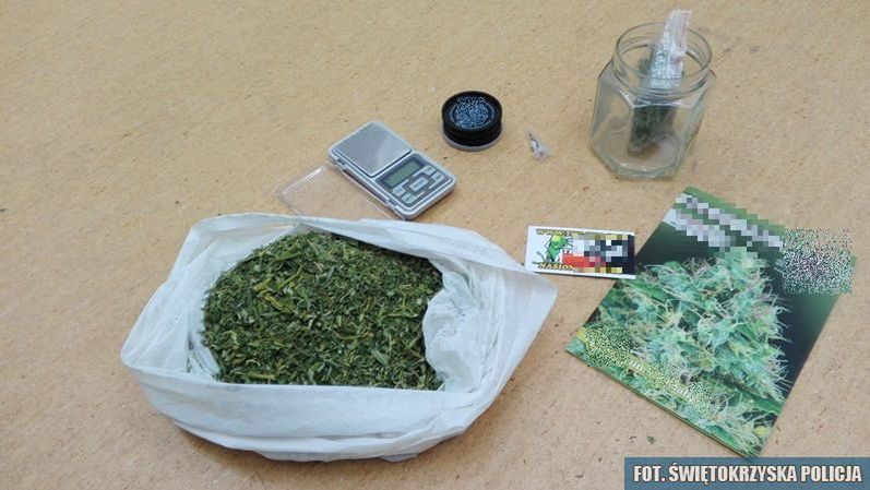 W miniony piątek policjanci z Wydziału Kryminalnego ostrowieckiej komendy otrzymali informację, że 18 – letni mieszkaniec Ostrowca Świętokrzyskiego może trudnić się narkotykowym procederem. Ich podejrzenia potwierdziły się, kiedy złożyli wizytę w jego mieszkaniu. W pokoju u 18 – latka funkcjonariusze ujawnili i zabezpieczyli susz roślinny, wstępnie zidentyfikowany jako marihuana w ilości ponad 127 gramów. Dodatkowo zabezpieczono elektroniczną wagę, kruszarkę do suszu oraz 14 ziaren konopi indyjskich. Mężczyzna został zatrzymany i usłyszał zarzuty posiadania narkotyków. Zgodnie z ustawą o przeciwdziałaniu narkomanii może mu teraz grozić kara do 3 lat pozbawienia wolności.