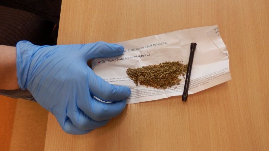 Ostrowieccy kryminalni w ramach działań operacyjnych zatrzymali w środę 21 – letniego mieszkańca Ostrowca Świętokrzyskiego, podejrzewanego o posiadanie narkotyków. W trakcie przeszukania jego odzieży, w kieszeni sportowej bluzy funkcjonariusze ujawnili papierowe zawiniątko z suszem roślinnym, wstępnie zidentyfikowanym jako marihuana w ilości ponad 5 gramów. Mężczyzna został zatrzymany, a narkotyki wraz ze szklaną fifką do palenia suszu zabezpieczone.