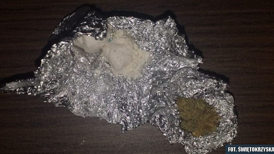 Wczoraj około godziny 20.30 na ul. Siennieńskiej w Ostrowcu Świętokrzyskim miejscowi kryminalni zatrzymali do kontroli drogowej pojazd marki Mercedes. Stróże prawa mieli przypuszczenia, że siedzący za kierownicą 24-latek może posiadać narkotyki. Podczas rozmowy mężczyzna zachowywał się bardzo nerwowo. Chwilę później okazało się, że jego zachowanie spowodowane było tym, że posiadał schowany w pojeździe metalowy młynek oraz dwa zawiniątka z zawartością suszu roślinnego i białego proszku. Wstępne badanie testerem narkotykowym wykazało, że 24-latek przewoził w swoim samochodzie porcję marihuany i ponad 4,5 grama amfetaminy. Ujawnione narkotyki zabezpieczono do dalszych badań natomiast młody ostrowczanin został zatrzymany. Jeszcze tego samego wieczoru 24-latek usłyszał zarzuty posiadania narkotyków, za które grozi mu kara do 3 lat pozbawienia wolności.