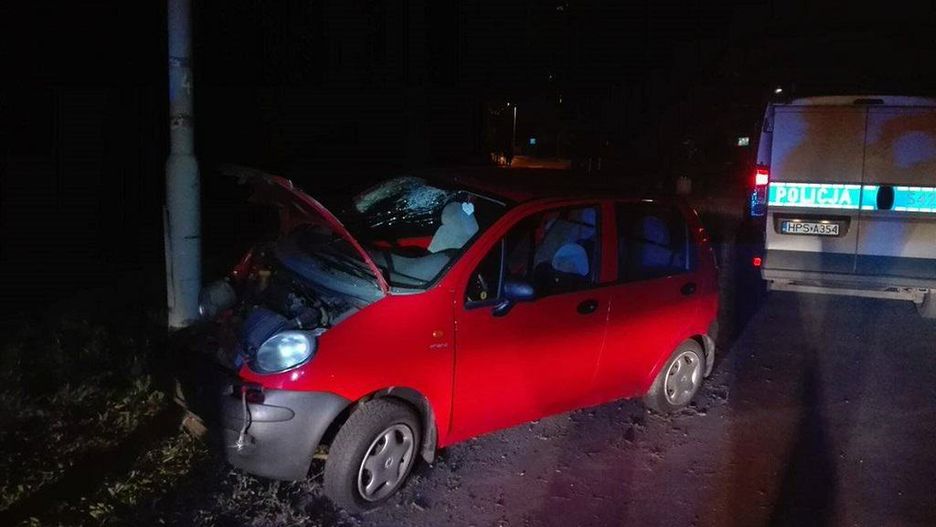 Auto uderzyło w słup oświetleniowy na ul. Polnej