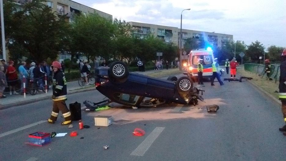 Dachowanie samochodu osobowego na ulicy Jana Pawła II