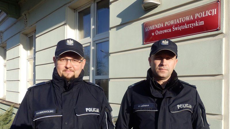 We wtorek będący w patrolu dzielnicowi sierż. sztab. Rafał Dobrowolski i st. sierż. Paweł Leśniak po godzinie 17 – stej dostali od dyżurnego jednostki polecenie pilnego udania się w rejon mostu na ulicy Sandomierskiej w Ostrowcu Świętokrzyskim. Z relacji zgłaszającego do rzeki Szewnianka miał wpaść mężczyzna. Policjanci natychmiast udali się we wskazane miejsce i po chwili zgromadzeni tam  świadkowie wskazali im miejsce w rzece, gdzie leżała nietrzeźwa, częściowo zanurzona w wodzie osoba. Z uwagi na stromy brzeg funkcjonariusze nie mogli wydostać 55 –latka stojąc na jego skraju, dlatego też natychmiast weszli do wody by pomóc mężczyźnie. Będący na miejscu świadkowie pomagali policjantom ogrzać wychłodzonego do czasu przyjazdu na miejsce karetki pogotowia. Po kilku minutach mieszkaniec Ostrowca Świętokrzyskiego został przekazany ratownikom medycznym i przewieziony do szpitala. Dzięki natychmiastowym działaniom policjantów z Komendy Powiatowej Policji w Ostrowcu Świętokrzyskim życiu 55 –latka już nie zagraża niebezpieczeństwo.