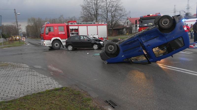 Na skrzyżowaniu doszło do kolizji samochodu osobowego VW Caddy z autem Skoda Fabia. Samochodem marki VW Caddy podróżowały dwie kobiety, natomiast autem marki Skoda jeden mężczyzna. Wszyscy uczestnicy zdarzenia wyszli z pojazdów o własnych siłach. Samochód VW Caddy w wyniku wypadku dachował. Działania strażaków polegały na zabezpieczeniu miejsca zdarzenia, udzieleniu kwalifikowanej pierwszej pomocy medycznej poszkodowanym oraz likwidacji skutków wypadku tj. usunięcie z jezdni wyciekłych płynów eksploatacyjnych z pojazdów. Jedna z osób biorących udział w zdarzeniu została zabrana do szpitala.