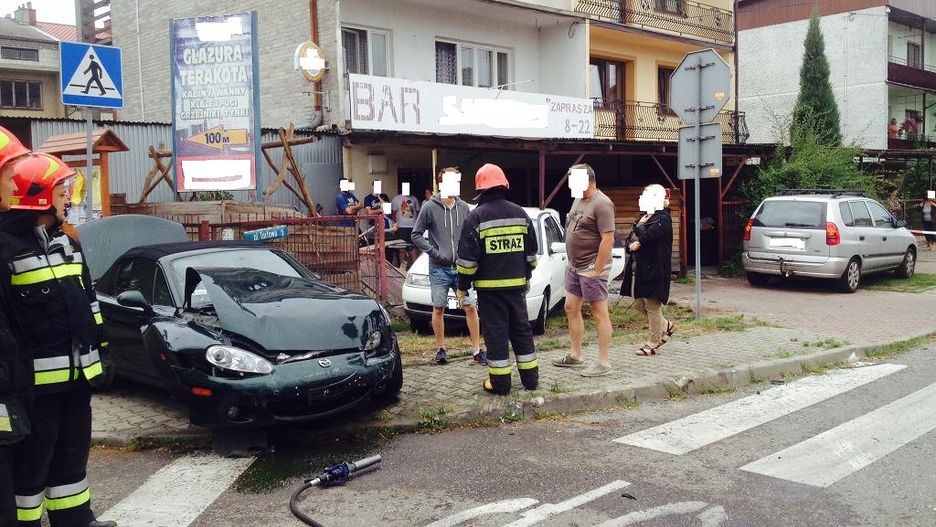Po dojeździe na miejsce zdarzenia straży pożarnej zastano dwa rozbite auta osobowe Marki Mazda MX5 oraz Seat Cordoba. Na miejscu zdarzenia obecne były już: policja i pogotowie ratunkowe. W jednym z aut znajdowała jedna osoba poszkodowana, której zespół ratownictwa medycznego udzielał pomocy medycznej. Działania straży pożarnej polegały na zabezpieczeniu miejsca zdarzenia, odłączeniu akumulatorów w pojazdach oraz zakręceniu butli z gazem w samochodzie osobowym marki Seat. Równocześnie strażacy pomogli pogotowiu przetransportować osobę poszkodowaną z samochodu osobowego do karetki przy pomocy noszy. Jedna osoba została zabrana przez zespół ratownictwa medycznego do szpitala. O zdarzeniu powiadomiono zarządcę drogi. Na tym działania zakończono. W akcji ratowniczej udział brało 3 samochody ratowniczo-gaśnicze, w tym 10 strażaków.
