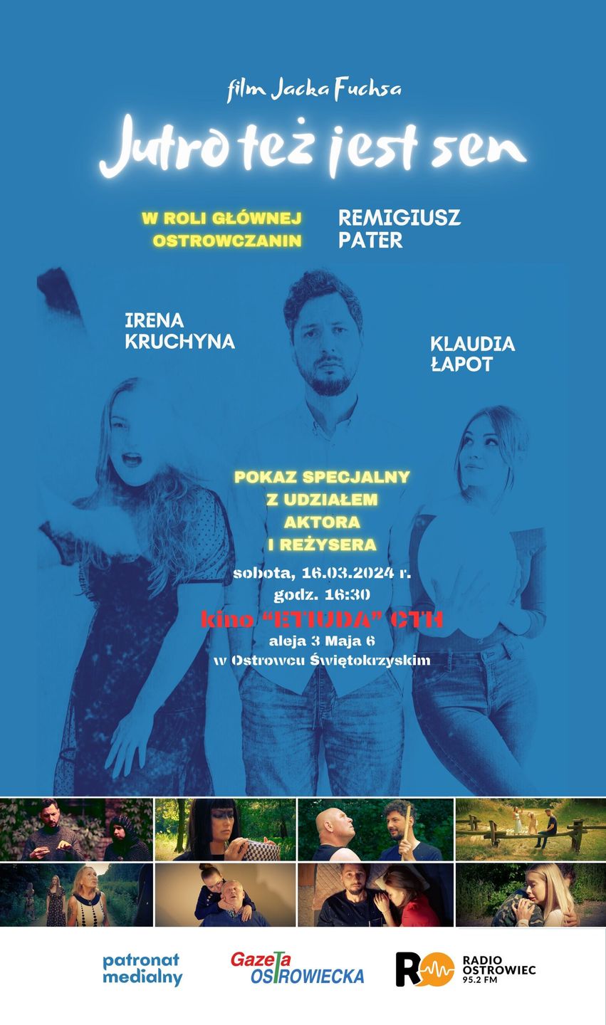 W sobotę, 16 marca 2024 r., w Ostrowcu Świętokrzyskim, w kinie „Etiuda” CTH odbędzie się specjalny pokaz pełnometrażowego filmu „Jutro też jest sen”. Jest to niezależny dramat fantastyczno-naukowy z elementami surrealizmu. Więcej poniżej!