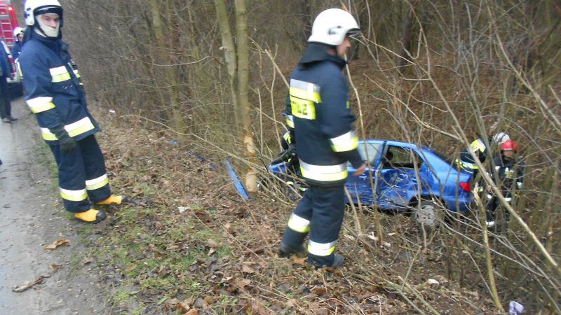 Do zdarzenia natychmiast zadysponowano 4 zastępy, w tym aż 12 ratowników. Po przyjeździe na miejsce zdarzenia ratowników stwierdzono, że w rowie drogi znajduje się samochód osobowy marki Citroen Xsara. Osoby poszkodowane opuściły pojazd przed przybyciem służb ratowniczych. Działania strażaków polegały na zabezpieczeniu miejsca zdarzenia oraz odłączeniu akumulatora od instalacji elektrycznej. Akcja trwała godzinę.