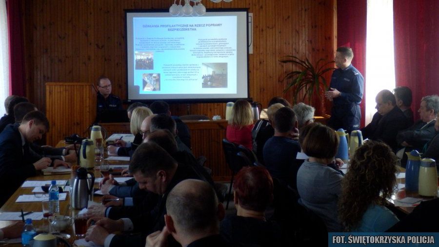 W czwartkowych konsultacjach społecznych w gminie Ćmielów, uczestniczył między innymi Pierwszy Zastępca Komendanta Powiatowego Policji w Ostrowcu Świętokrzyskim mł. insp. Piotr Stępień, Burmistrz i Wiceburmistrz Miasta i Gminy Ćmielów, radni, sołtysi i dyrektorzy szkół. Mł. insp. Piotr Stępień omówił założenia, cele i projekt ,,Mapy Zagrożeń’’ a także przedstawił dane dotyczące stanu bezpieczeństwa w gminie Ćmielów za 2015 rok. Uczestnicy spotkania mieli okazję do przekazania ważnych z ich perspektywy informacji, dotyczących poprawy bezpieczeństwa oraz wskazali na konieczność stworzenia szerokiego dostępu do map za pośrednictwem lokalnych mediów. Wśród postulatów znalazła się również konieczność uzupełnienia tej inicjatywy o opisową część mapy.