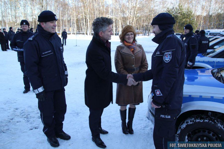 W obecności zaproszonych gości oraz funkcjonariuszy garnizonu świętokrzyskiego, odbyło się uroczyste przekazanie kluczyków do nowych pojazdów, które zostały zakupione ze środków budżetu Policji. Funkcjonariuszom z terenu województwa będzie służyć łącznie 16 nowych pojazdów: 7 radiowozów Skoda Yeti, 3 Kia, Opel Corsa, 3 VW T6 , Ford Transit oraz Łódź Motorowa służąca do patrolowania akwenów.