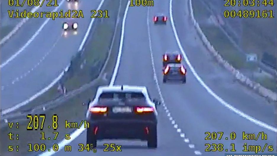Wczoraj mundurowi ze skarżyskiej drogówki zatrzymali do kontroli drogowej pojazd marki Jaguar, którego kierujący przekroczył dozwoloną prędkość o 87 km/h. Policyjny wideorejestrator wskazał, że kierujący brytyjskim autem rozpędził się do 207km/h. 46 –latek z województwa mazowieckiego został ukarany 500 złotowym mandatem, a na jego koncie znalazło się 10 punktów karnych.