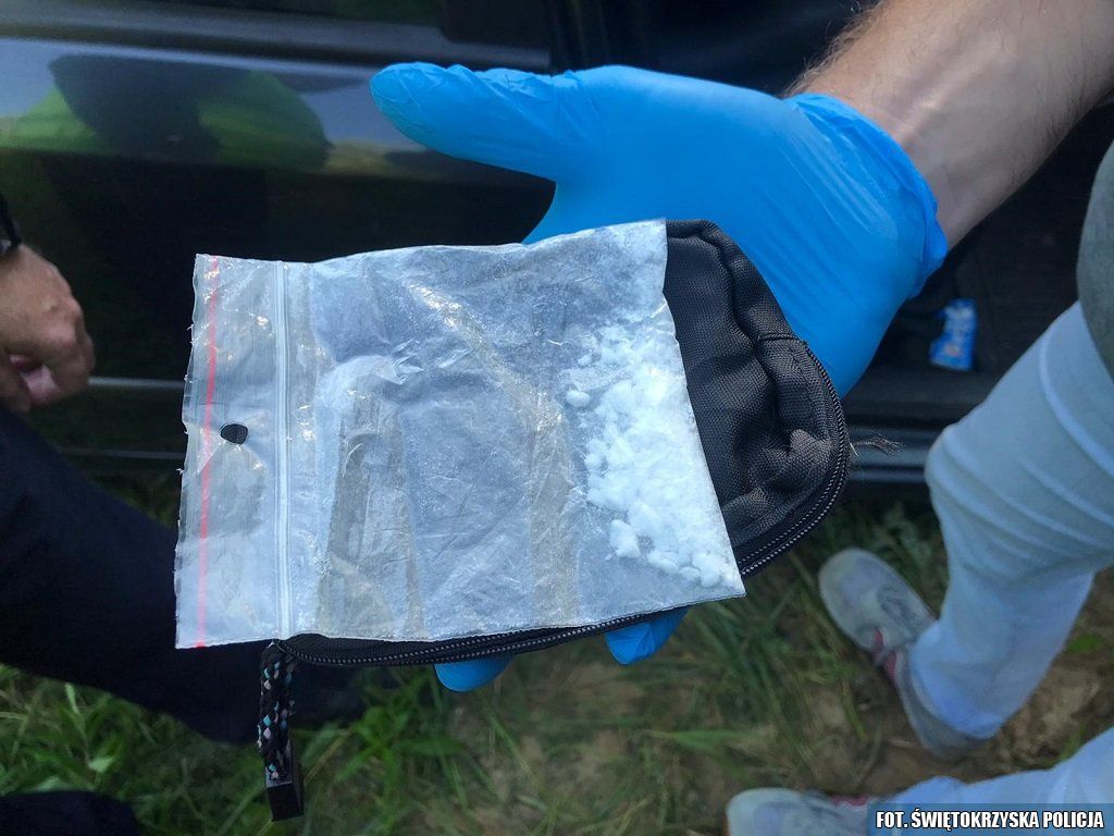 Wczoraj po godzinie 7.00 policjanci ostrowieckiej drogówki pełniąc służbę radiowozem nieoznakowanym w miejscowości Rudka Bałtowska zwrócili uwagę na jadący z przeciwka pojazd marki Renault. Kierowca francuskiego auta nie miał zapiętych pasów bezpieczeństwa i w obszarze zabudowanym poruszał się ze znaczą prędkością. Mundurowi postanowili za nim zawrócić i zatrzymać do kontroli drogowej. Widząc to kierowca renaulta przyspieszył. Miernik prędkości wskazał, że poruszał się on o 47 km/h szybciej niż zezwalają na to obowiązujące przepisy. Mundurowi za pomocą sygnałów świetlnych i dźwiękowych wydali kierującemu nakaz zatrzymania się, lecz mężczyzna ignorował polecenia. Po tym jak mundurowi wyprzedzili go i po raz drugi wskazali miejsce do zatrzymania, kierujący zwolnił po czym gwałtownie przyspieszył i skręcił w boczną uliczkę kontynuując ucieczkę. Po chwili jazdy wjechał w tzw. „ślepą uliczkę”. Z uwagi na fakt, iż na jej końcu znajdował się gęsty las, mężczyzna zatrzymał swój samochód i oddalił się w pobliskie zarośla. W porzuconym przez siebie pojeździe pozostawił nie tylko swoje dokumenty, ale i torebkę strunową z zawartością białego proszku, wagę elektroniczną i opaloną tzw. fifkę. Ostatecznie mężczyzna został zatrzymany na pobliskiej ulicy przez funkcjonariuszy z innego patrolu Wydziału Ruchu Drogowego. Użyty przez stróżów prawa tester narkotykowy potwierdził, że ujawniona substancja to prawdopodobnie amfetamina w ilości ponad 4 gramów. Mężczyzna został zatrzymany i trafił do policyjnej celi. Ponadto policjanci podejrzewali, że mężczyzna prowadził samochód będąc pod wpływem narkotyków. Przeprowadzony test narkotykowy dał wyniki pozytywny. Uciekinierem okazał się 27-letni mieszkaniec gminy Ożarów, który już usłyszał zarzuty.
