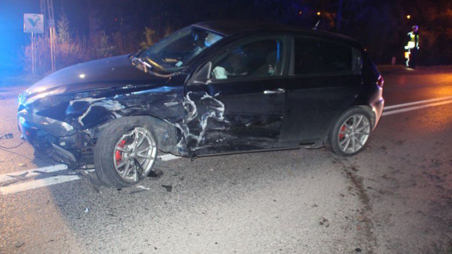 Do zdarzenia doszło przedwczoraj późnym wieczorem w miejscowości Bodzentyn. Policjanci z kieleckiej drogówki pełnili służbę wspólnie z funkcjonariuszami z oddziału prewencji w Kielcach. Tuż przed godziną 20:00 ich uwagę przykuł agresywnie zbliżający się pojazd osobowy bez tablicy rejestracyjnej jadący w kierunku Kielc. Policjanci postanowili go zatrzymać. Na widok policyjnego patrolu kierowca gwałtownie przyspieszył i próbował odjechać. Natychmiast w kierunku uciekającego udały się dwa policyjne radiowozy. Po kilkuset metrach na łuku drogi kierujący audi stracił panowanie nad pojazdem i uderzył w jadącą z przeciwka alfę romeo. Gwałtownie wytrącony z toru jazdy kierowca alfy niebezpiecznie zaczął zbliżać się do radiowozu. Szybka i zdecydowana reakcja policjanta zapobiegła zderzeniu się z uderzonym pojazdem poszkodowanego. Policjanci zatrzymali 34-letniego kierowcę, który próbował uciec. Jak się okazało miał blisko 2 promile alkoholu w wydychanym powietrzu. Kierujący alfą 24 latek trafił do szpitala, ale na szczęście nie doznał poważnych obrażeń ciała.
