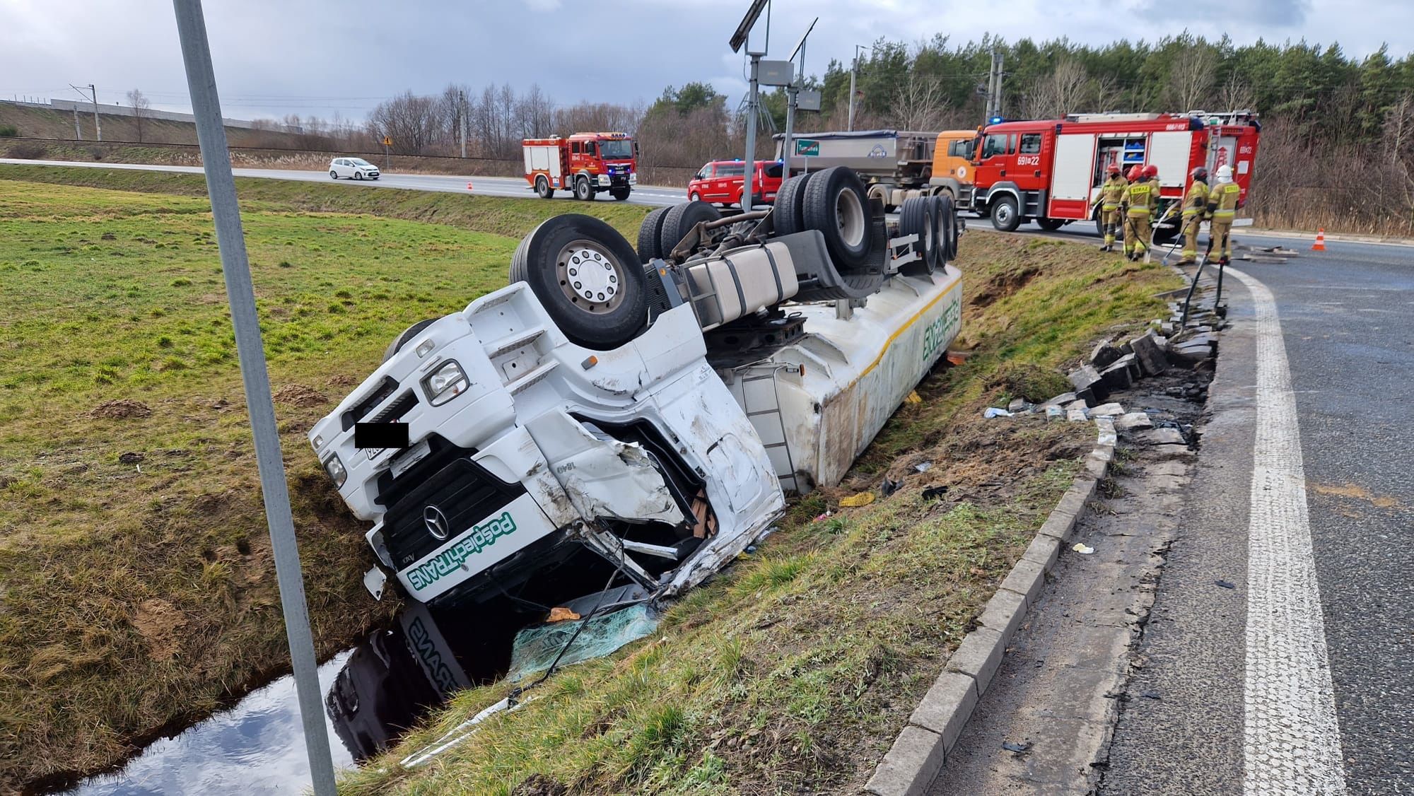 – Po przybyciu na miejsce zdarzenia i przeprowadzeniu rozpoznania ustalono, że w rowie kołami do góry leży cysterna. Kierowca ciężarówki opuścił pojazd o własnych siłach. Ze zbiornika cysterny wyciekała ciecz, która według dokumentów transportowych, była bio-dodatkiem do oleju napędowego – informuje st. kpt. Daniel Wachowski, oficer prasowy PSP w Wyszkowie.
