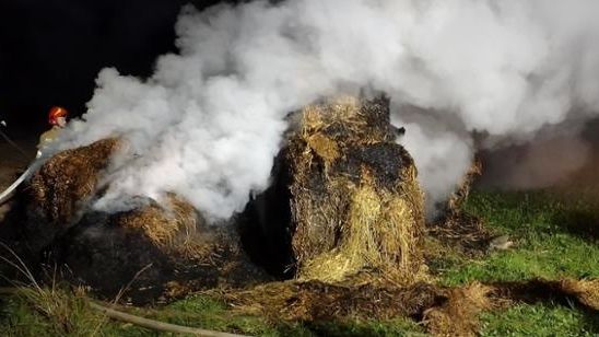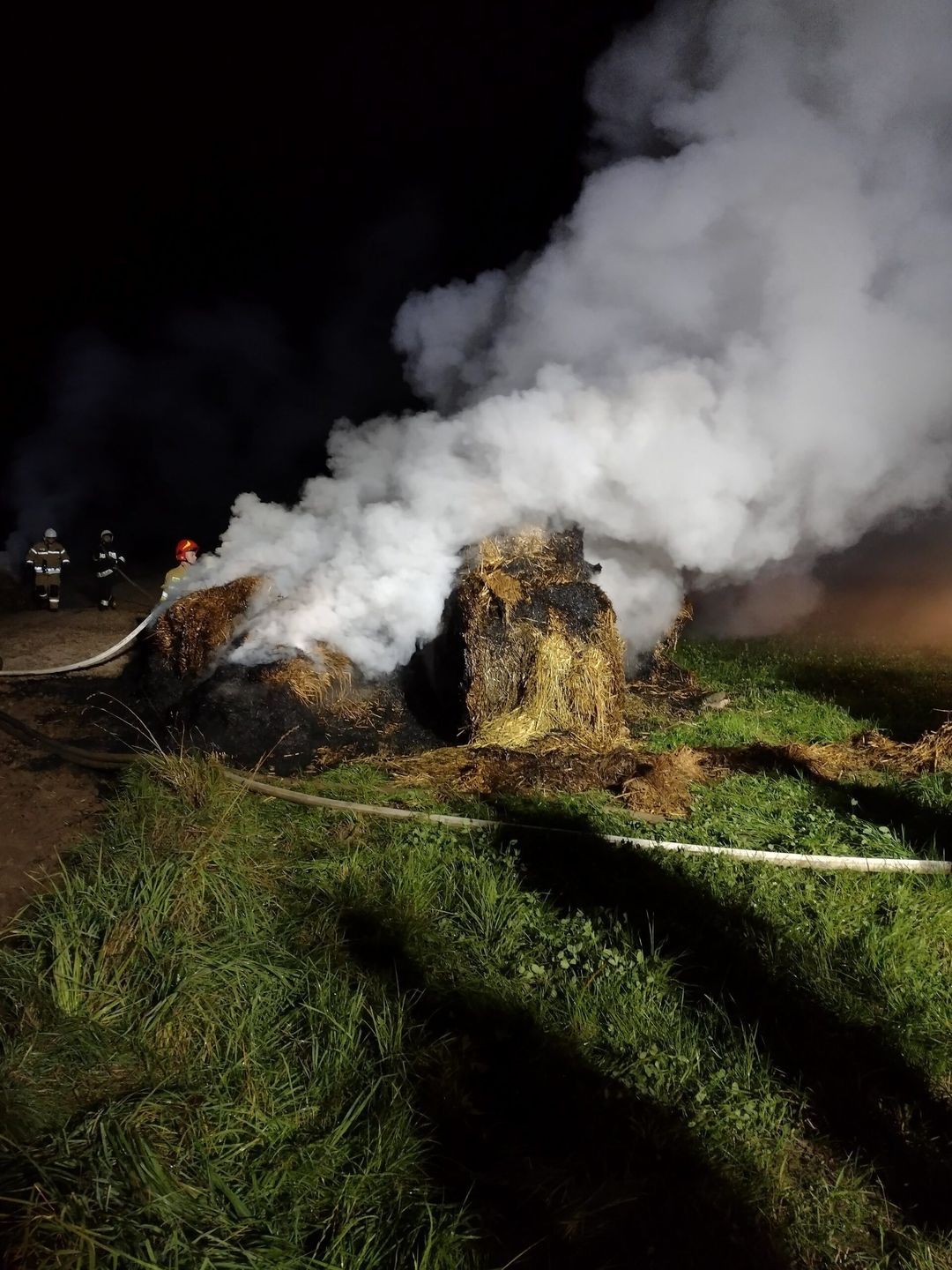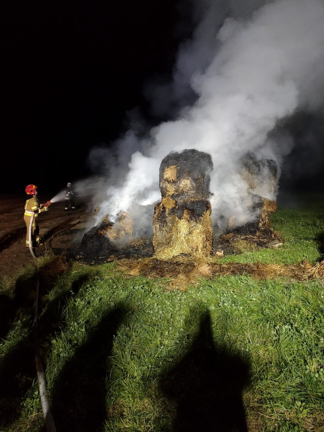 – Do zdarzenia łącznie zadysponowano 4 samochody ratowniczo-gaśnicze, w tym 17 strażaków. Po przybyciu zastępów na teren akcji stwierdzono, że pali się zmagazynowana słoma w balotach. Pożarem objęta była już około płowa powierzchni stosu zawierającego blisko 40 balotów. Paląca się hałda znajdowała się w odległości 100 m od budynków i stwarzała zagrożenia dalszym rozprzestrzenieniem się ognia na sąsiednie obiekty. Działania zastępów polegały na zabezpieczeniu miejsca zdarzenia oraz ciągłym podawaniu wody w natarciu na palące się baloty. W trakcie działań właściciel przy pomocy ładowarki przemieścił część stosu co rozdzieliło palące się elementy od pozostałych i znacznie ułatwiło prowadzenie działań. Po lokalizacji pożaru trwało dogaszanie i nadzór nad palącym się stogiem. Po całkowitym ugaszeniu pożaru teren przekazano właścicielowi. Na tym działania zakończono. Akcja trwała prawie 4 godziny – relacjonuje mł.bryg. Barbara Majdak, oficer prasowy Państwowej Straży Pożarnej w Ostrowcu Świętokrzyskim.