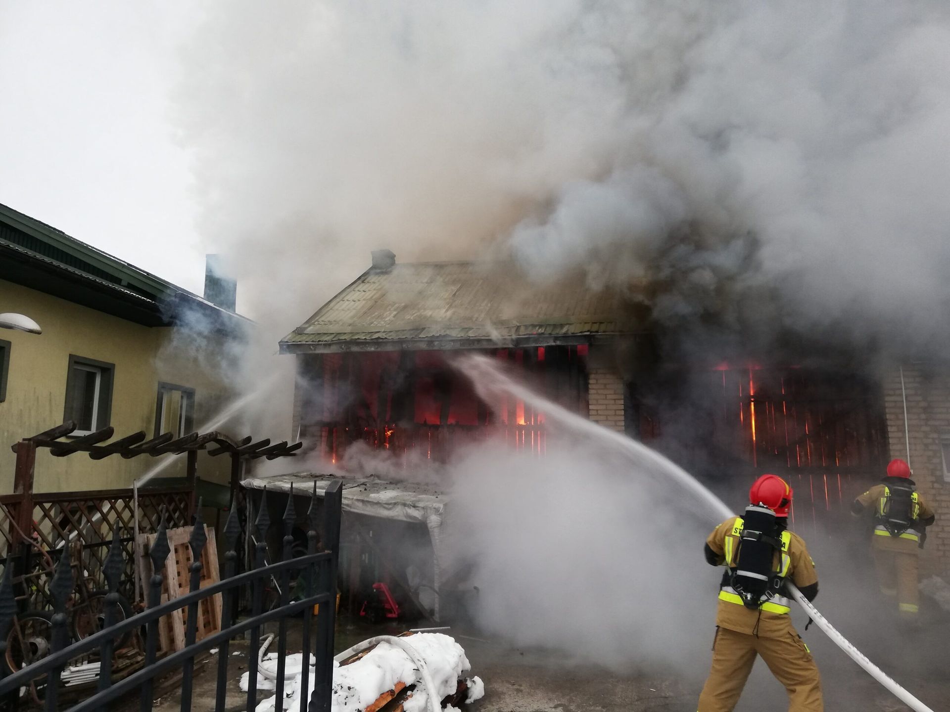 – Po przybyciu ratowników na teren akcji stwierdzono, że pożarem objęty jest dach i jedno z pomieszczeń budynku gospodarczego o konstrukcji drewniano-murowanej. Istniało zagrożenie rozprzestrzenienia się pożaru na sąsiadujący obiekt mieszkalny. Działania ratowników w pierwszej kolejności polegały na zabezpieczeniu miejsca zdarzenia i podaniu wody w natarciu na palącą się więźbę dachową. Następnie dokonano rozbiórki elementów konstrukcji więźby oraz częściowo drewnianego stropu w celu dokładnego dogaszenia tlących się elementów konstrukcji. Dodatkowo usunięto na zewnątrz nadpalone i składowane w pomieszczeniu materiały, które były objęte pożarem. Wszystkie te rzeczy zostały przelane wodą. Wygaszono również piec, który ogrzewał budynek. Po całkowitym ugaszeniu i oddymieniu wszystkich pomieszczeń sprawdzono je używając kamery termowizyjnej nie stwierdzając zagrożenia. Na tym działania zakończono, akcja trwała ponad 3 godziny – informuje mł.bryg. Barbara Majdak, oficer prasowy PSP Ostrowiec.