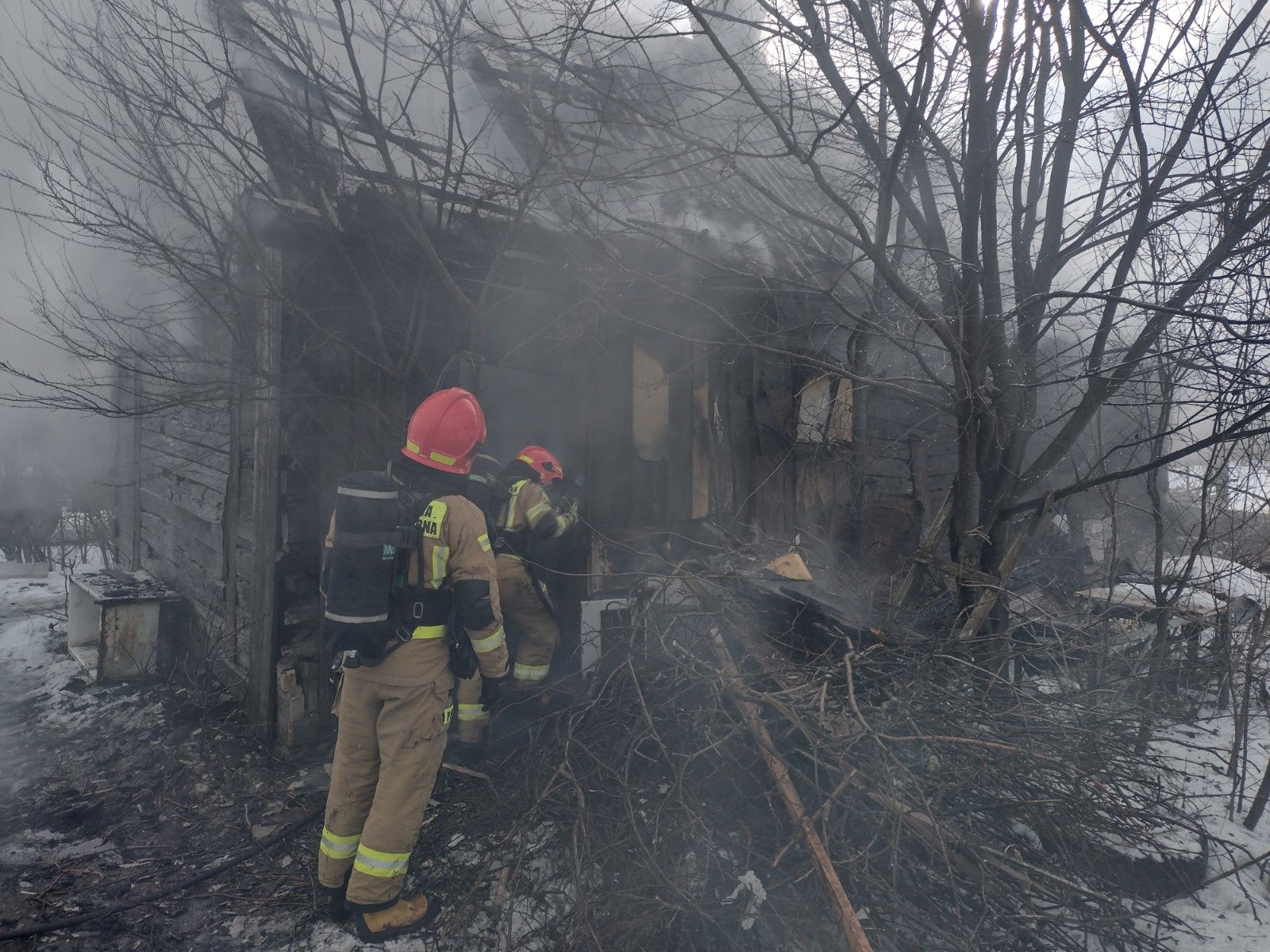 Pożar drewnianego budynku mieszkalnego