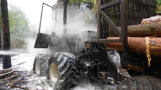Po przybyciu ratowników na miejsce zdarzenia stwierdzono, że w lesie w pobliżu drogi szutrowej pali się maszyna służąca do zrywki i załadunku drewna. Działania zastępów PSP polegały na zabezpieczeniu miejsca zdarzenia i ugaszeniu pożaru. Następnie z uwagi na bardzo dużą temperaturę oleju w układzie hydraulicznym maszyny przystąpiono do chłodzenia zbiornika z olejem oraz dokładnie zabezpieczono pianą gaśniczą maszynę jak również ściółkę leśną w pobliżu pożaru. Na miejsce zdarzenia przybyła policja oraz 2 pracowników Nadleśnictwa Ostrowiec Św. Akcja trwała ponad 2 godziny.