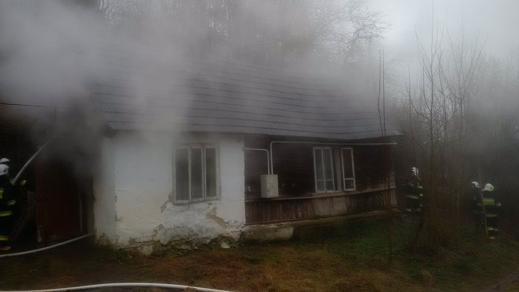 Po przybyciu na miejsce zdarzenia stwierdzono, że pali się poddasze budynku mieszkalnego (częściowo murowany, częściowo drewniany) pokrytego dachówką. Właścicielka domu znajdowała się na zewnątrz budynku. Istniało zagrożenie rozprzestrzenienia się pożaru na cały budynek oraz usytuowanych w pobliżu drzew. Działania zastępów PSP i OSP polegały na zabezpieczeniu miejsca zdarzenia, podaniu dwóch prądów wody (na poddasze oraz na parter), ewakuacji mienia (telewizor, meble),wyniesieniu butli LPG z budynku. Instalacja elektryczna została odłączona przez sąsiadów przed przybyciem strażaków. Po przybyciu pogotowia energetycznego odłączono przyłącze do domu objętego pożarem. W celu całkowitego ugaszenia pożaru konieczna okazała się częściowa rozbiórka dachu budynku. Po dokładnym sprawdzeniu budynku kamerą termowizyjną działania zakończono. Akcja trwała ponad 2,5 godziny.