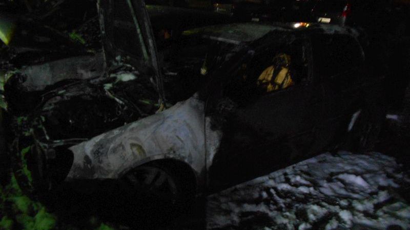 Po przybyciu na miejsce zdarzenia ratowników stwierdzono, że palą się dwa samochody osobowe marki VW Golf oraz Nissan Almera stojące obok siebie na osiedlowym parkingu. Istniało zagrożenie dla sąsiadujących pojazdów. Działania strażaków polegały na podaniu dwóch prądu piany na palące się samochody. Po przygaszeniu pojazdów odłączono w nich akumulatory. Następnie dogaszono pojazdy. Na miejsce przybyli właściciele aut oraz Policja. Uszkodzeniu (okopceniu) uległy trzy pozostałe pojazdy stojące na parkingu. Przypuszczalną przyczyną zdarzenia mogło być podpalenie. Akcja trwała godzinę.