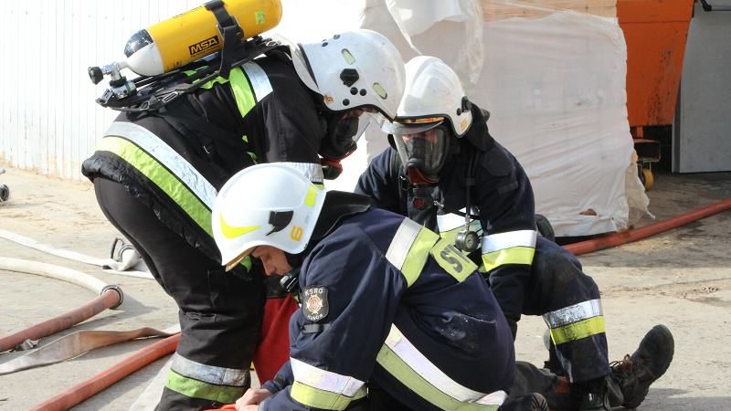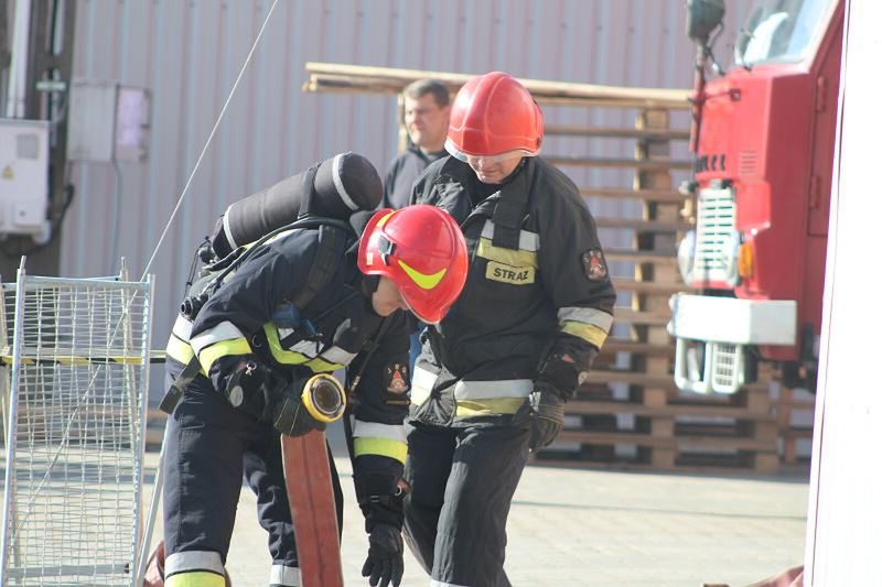 Po dotarciu strażaków do miejsca pożaru stwierdzono, ze pracownicy zakładu będący na miejscu próbowali bezskutecznie gaśnicami ugasić pożar w kotłowni oraz odłączyli prąd w obiekcie, po czym ewakuowali się z budynku. Jeden z pracowników firmy informuje strażaków, że prawdopodobnie jedna osoba została w zadymionym pomieszczeniu. Dodatkowo pożarem objęty był również budynek wiaty, w którym składowano odpady poprodukcyjne. Działania straży pożarnej polegały na dotarciu do osoby poszkodowanej, która była nieprzytomna oraz ewakuowaniu ją w bezpieczne miejsce. Natychmiast przystąpiono do udzielenia kwalifikowanej pierwszej pomocy mężczyźnie. Na miejsce zdarzenia wezwano karetkę pogotowia. W międzyczasie, podczas skutecznej akcji gaśniczej jeden ze strażaków stracił przytomność, któremu również natychmiast udzielono pomocy medycznej. Po skutecznym i szybkim ugaszeniu pożaru, dokładnie przeszukano wszystkie pomieszczenia w obiekcie oraz oddymiono je. Osoby poszkodowane zostały przekazane pogotowiu ratunkowemu. Na szczęście były to tylko ćwiczenia Jednostki Ratowniczo-Gaśniczej nr 2 w Ostrowcu Św. Na zakończenie ćwiczeń strażacy zapoznali się z charakterystyką obiektu oraz z zagrożeniami w nim występującymi. Ponadto w trakcie ćwiczeń sprawdzono możliwość wykorzystania zbiornika przeciwpożarowego znajdującego się na terenie zakładu. Wnioski z ćwiczeń zostaną wykorzystane w procesie szkolenia i doskonalenia zawodowego strażaków.