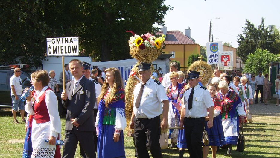 11.30 – Zbiórka delegacji, Pocztów Sztandarowych i formowanie korowodu dożynkowego na Rynku w Ćmielowie.