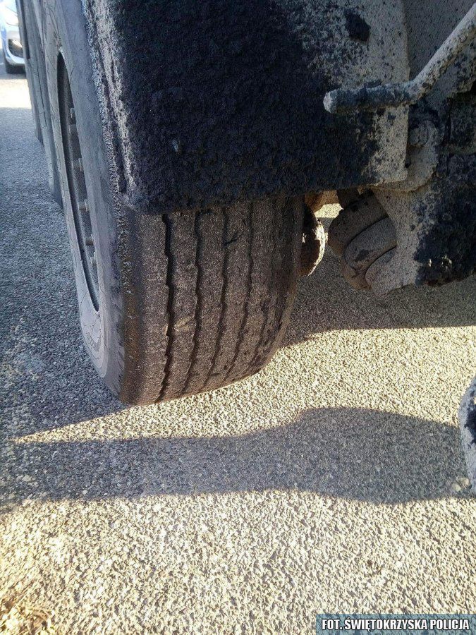 Mundurowi z Wydziału Ruchu Drogowego Komendy Powiatowej Policji w Skarżysku – Kamiennej zatrzymali wczoraj na ulicy Piłsudskiego ciężarówkę przewożącą koks. Okazało się, że pojazd nie jest dopuszczony do ruchu, nie posiadał bowiem aktualnych badań technicznych. Ładunek przewożony na naczepie nie był w wymagany sposób zabezpieczony, a stan opon wprowadził kontrolerów w osłupienie. Nie dość, że dwie miały inny bieżnik, to były tak zniszczone, że nadawały się jedynie na śmietnik. 36-letni kierowca został ukarany mandatem karnym. Policjanci sporządzili również stosowną dokumentację do Inspekcji Transportu Drogowego. Nieodpowiedzialny właściciel firmy będzie musiał liczyć się ze sporą grzywną za dopuszczenie pojazdu do wykonywania przewozów.