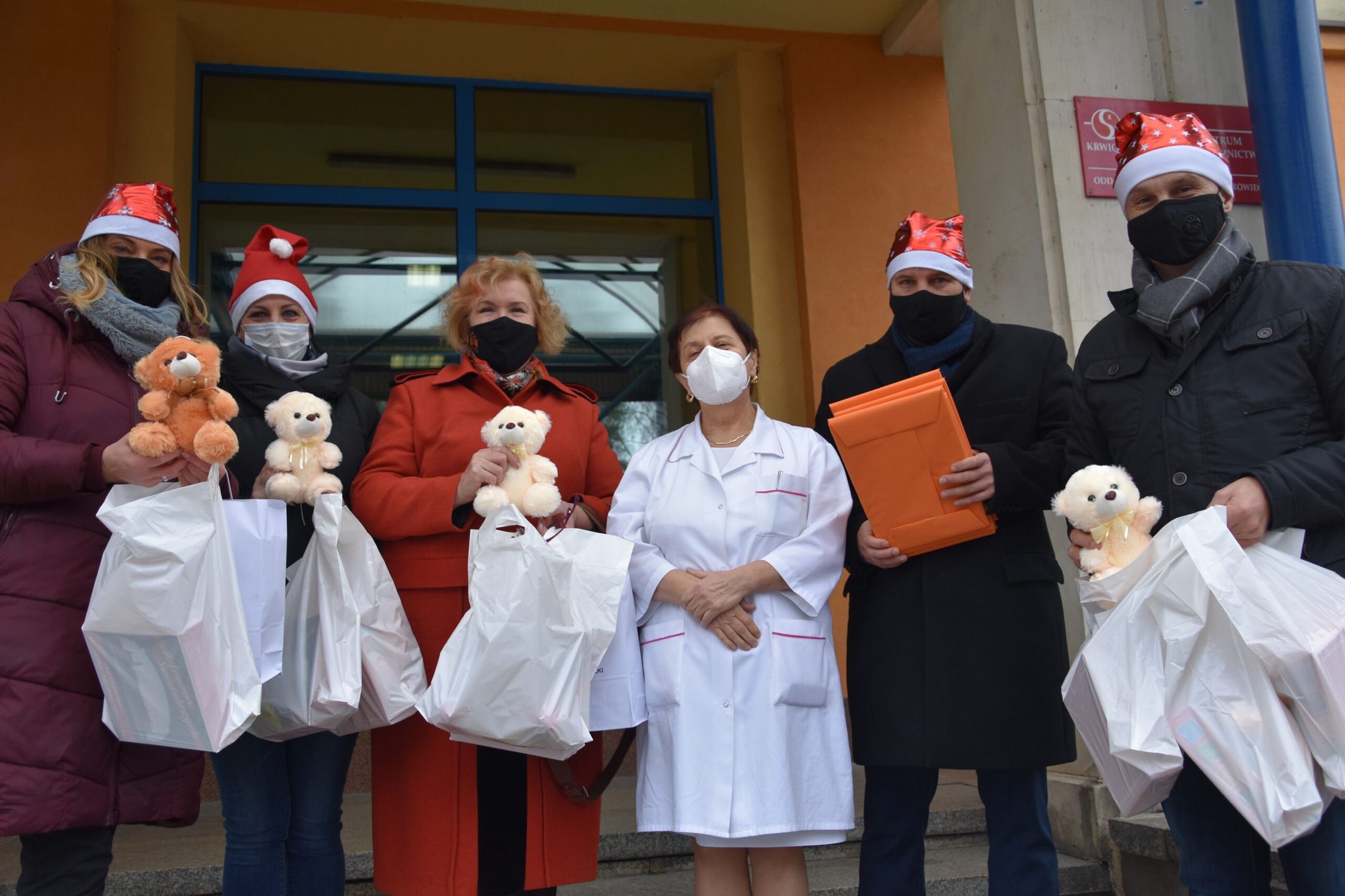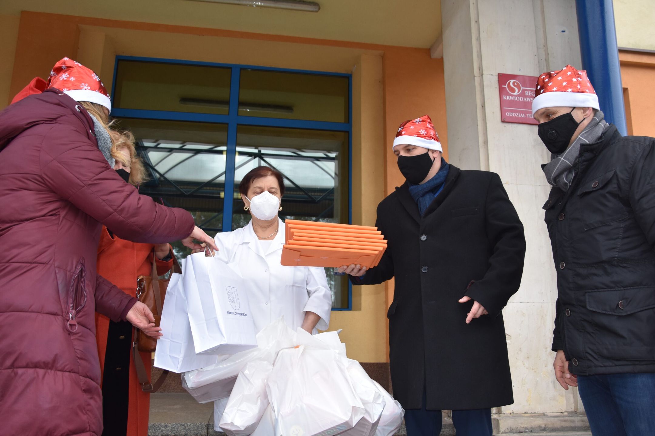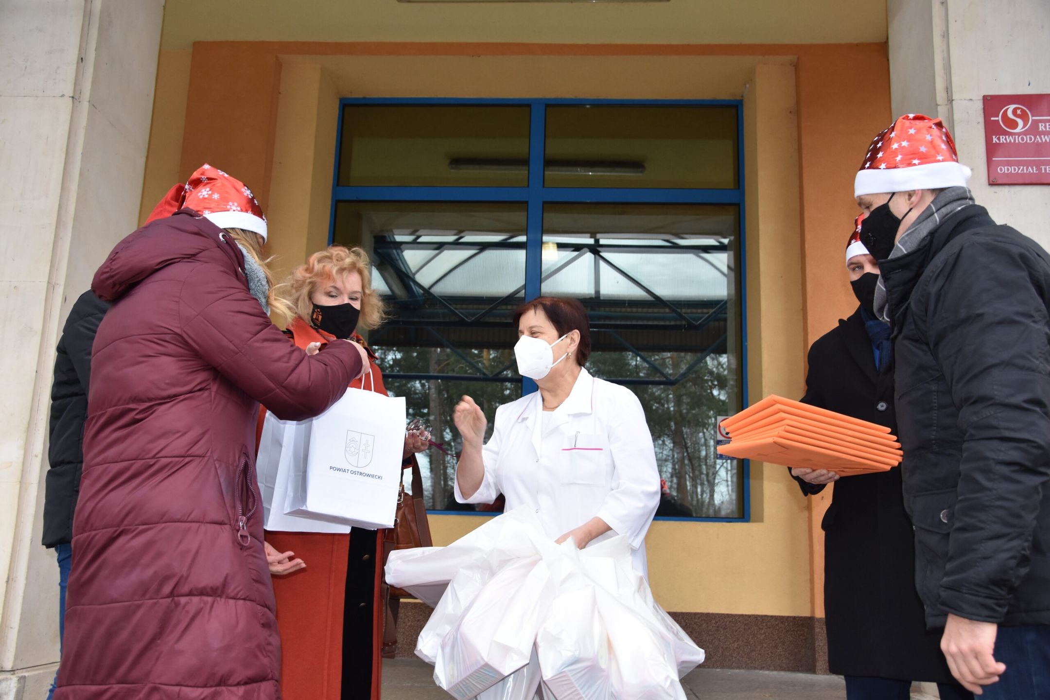 W tym roku, ze względu na obostrzenia sanitarne, po raz pierwszy oczekiwani goście nie weszli do budynku. Przewodniczący Rady Powiatu, Mariusz Pasternak, członkowie zarządu powiatu: Agnieszka Rogalińska i Łukasz Dybiec oraz Irena Renduda -Dudek przewodnicząca Rady Miasta Ostrowca Św., Joanna Pikus wiceprzewodnicząca Rady Miasta, przekazali przywiezione podarunki ordynator oddziału Longinie Warsińskiej -Bogackiej, która zapewniła, że przekaże je najmłodszym. Okolicznościowe upominki otrzymał też personel oddziału – kubeczki i kalendarze.
