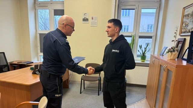 Wczoraj 22-latek został zaproszony do gabinetu Komendanta Powiatowego Policji w Ostrowcu Świętokrzyskim. Szef ostrowieckich policjantów insp. Zbigniew Wilki osobiście podziękował zaproszonemu gościowi za odwagę oraz gotowość do reagowania na przypadki łamania przepisów prawa.