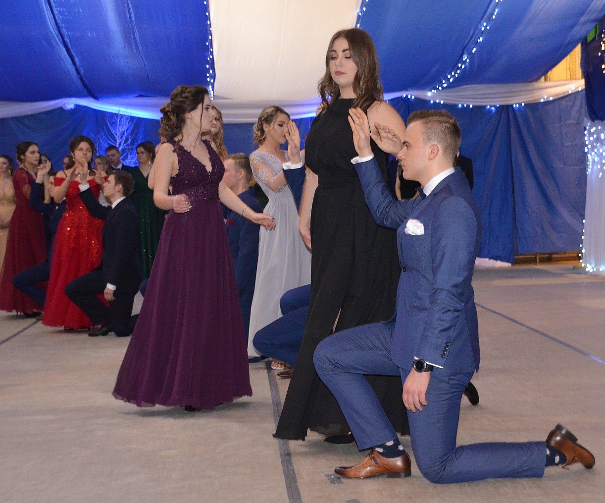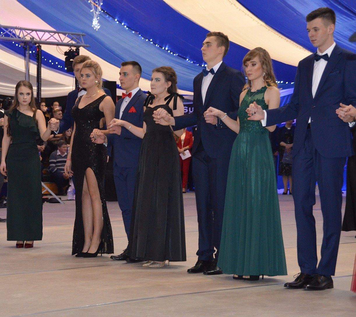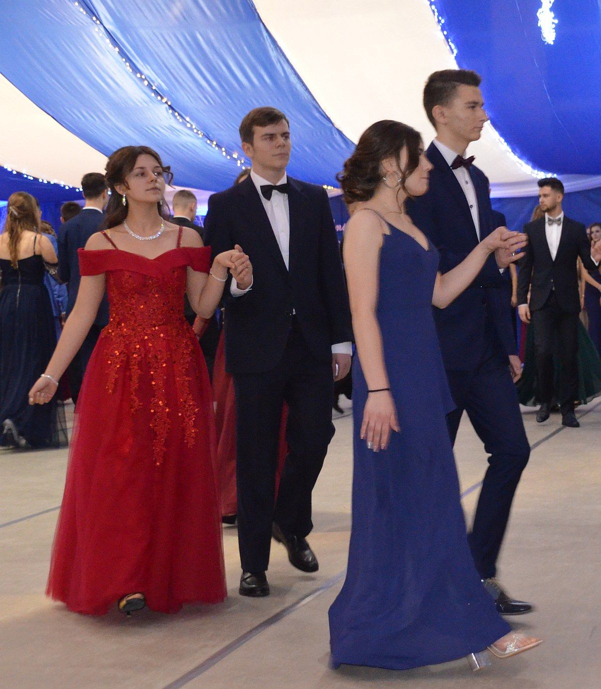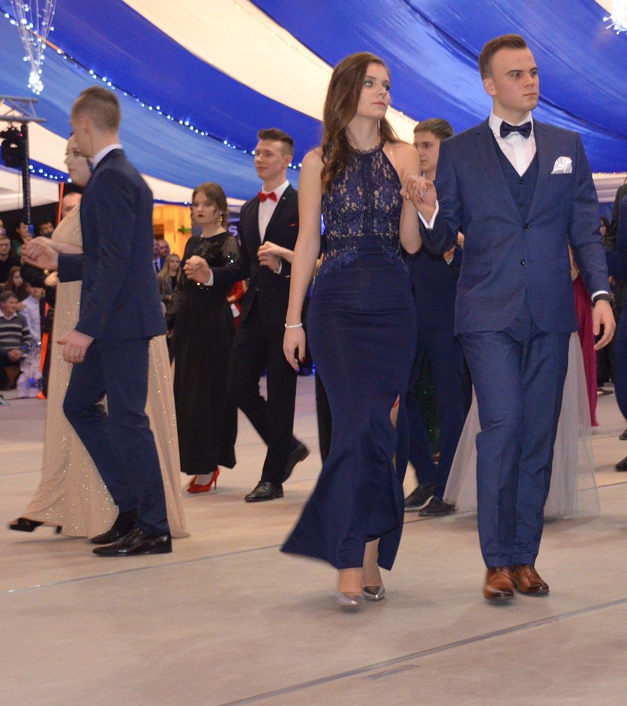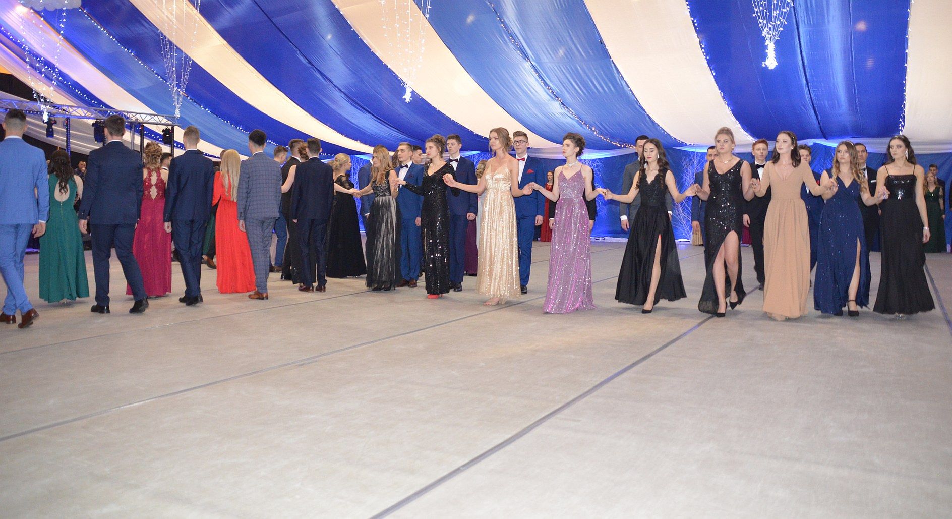 Jeżeli chodzi o studniówkowe stylizacje to w tym roku mieliśmy do czynienia z powrotem długich, zwiewnych sukni. Panowie na tę noc ubrali garnitury w ciemnych kolorach, białe koszule i muchy.