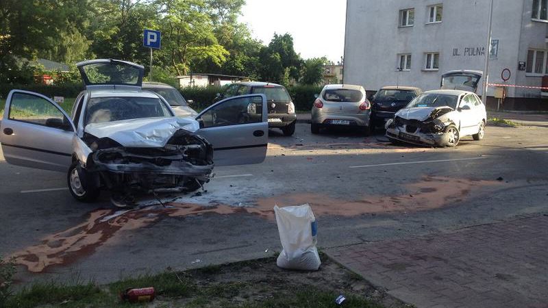 Wypadek dwóch samochodów osobowych na ulicy Polnej