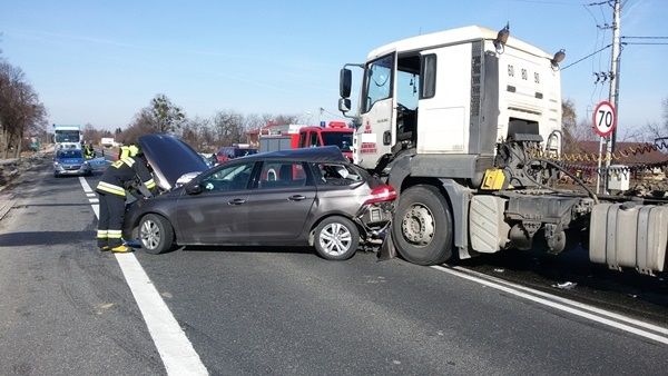 Kierowca samochodu osobowego znajdował się w karetce pod opieką ZRM, natomiast kierujący ciężarówką nie odniósł żadnych obrażeń. Samochód osobowy i ciężarowy znajdowały się na obu pasch drogi krajowej nr 9 blokując przejazd w obu kierunkach. Działania straży pożarnej polegały na zabezpieczeniu miejsca zdarzenia, odłączaniu akumulatorów w samochodzie osobowym i ciężarowym. Po zakończeniu czynności dochodzeniowych prowadzonych przez Policję zebrano rozlane płyny eksploatacyjne przy pomocy sorbentu i uprzątnięto pozostałości powypadkowe. Działania trwały ponad 3 godziny.