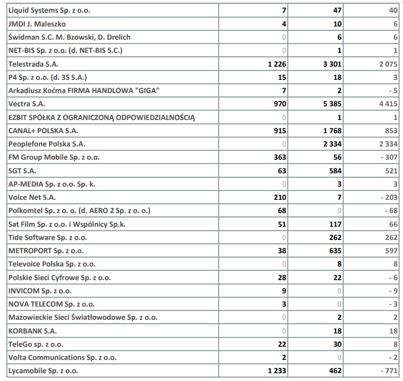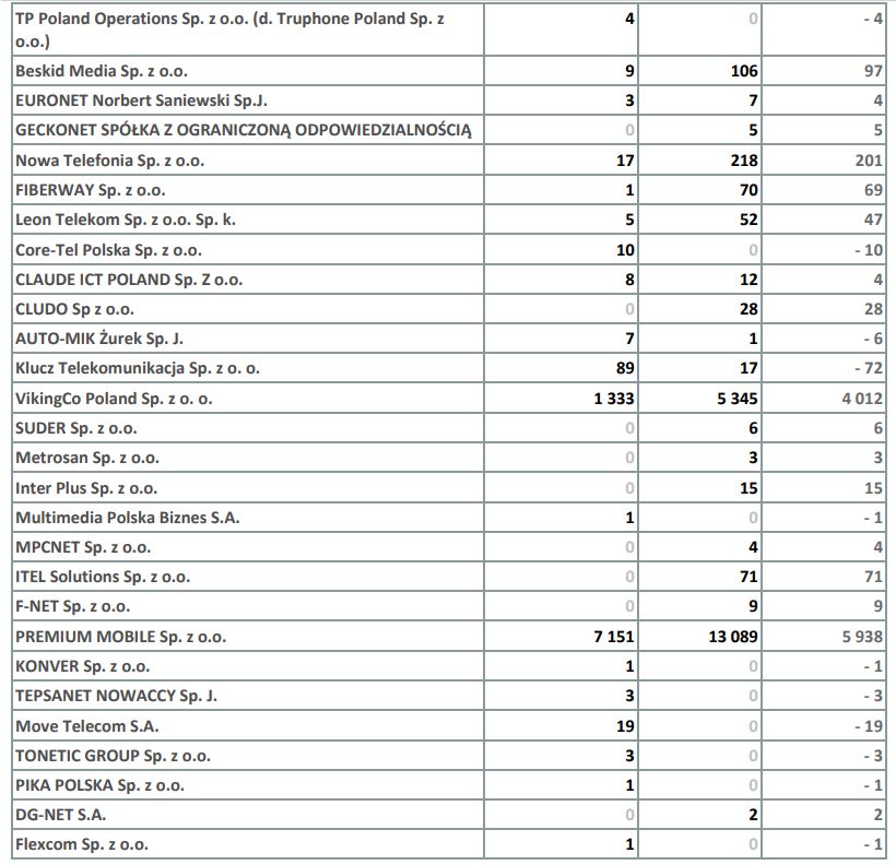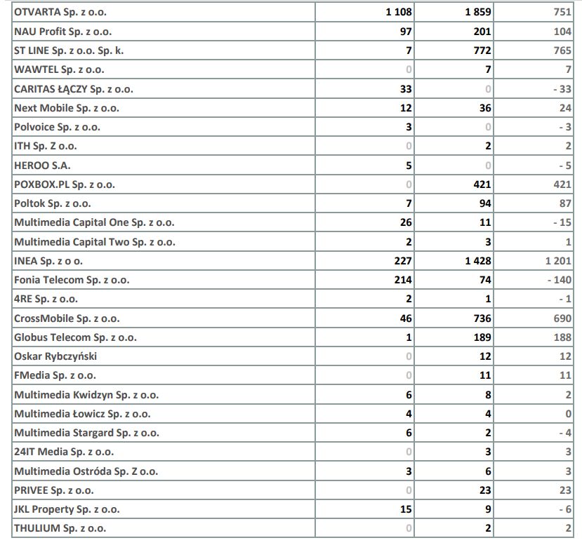 Oznacza to, że z Plusa uciekło najwięcej klientów. Operator zanotował stratę na poziomie ponad 52 tys. utraconych klientów. Jak widać z powyższego raportu Play nadal rośnie bardzo dynamicznie.