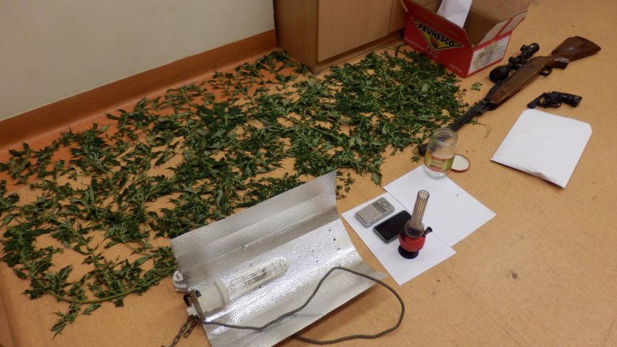 W trakcie przeszukania pomieszczeń mieszkalnych i gospodarczych policjanci w tzw. letniej kuchni ujawnili i zabezpieczyli susz roślinny w ilości ponad 34 gramów. Został on wstępnie zidentyfikowany jako marihuana. W trakcie dalszych czynności stróże prawa ujawnili dodatkowo świeżo pocięte kawałki rośliny konopi indyjskiej, elektroniczną wagę, fajkę wodną oraz lampę służącą do uprawy roślin w pomieszczeniach. Kryminalni zabezpieczyli także dwie jednostki broni i amunicję. 21 – latek został zatrzymany i trafił do policyjnej celi. Dzisiaj usłyszy zarzuty posiadania i uprawy marihuany.
