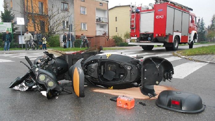 Po przybyciu na miejsce zdarzenia zastępów straży pożarnej stwierdzono kolizję samochodu osobowego tj. Fiat Punto ze skuterem Zipp. Na miejscu obecny był Zespół Ratownictwa Medycznego, którego lekarz udzielał pomocy poszkodowanemu kierowcy skutera, który następnie został zabrany do szpitala.