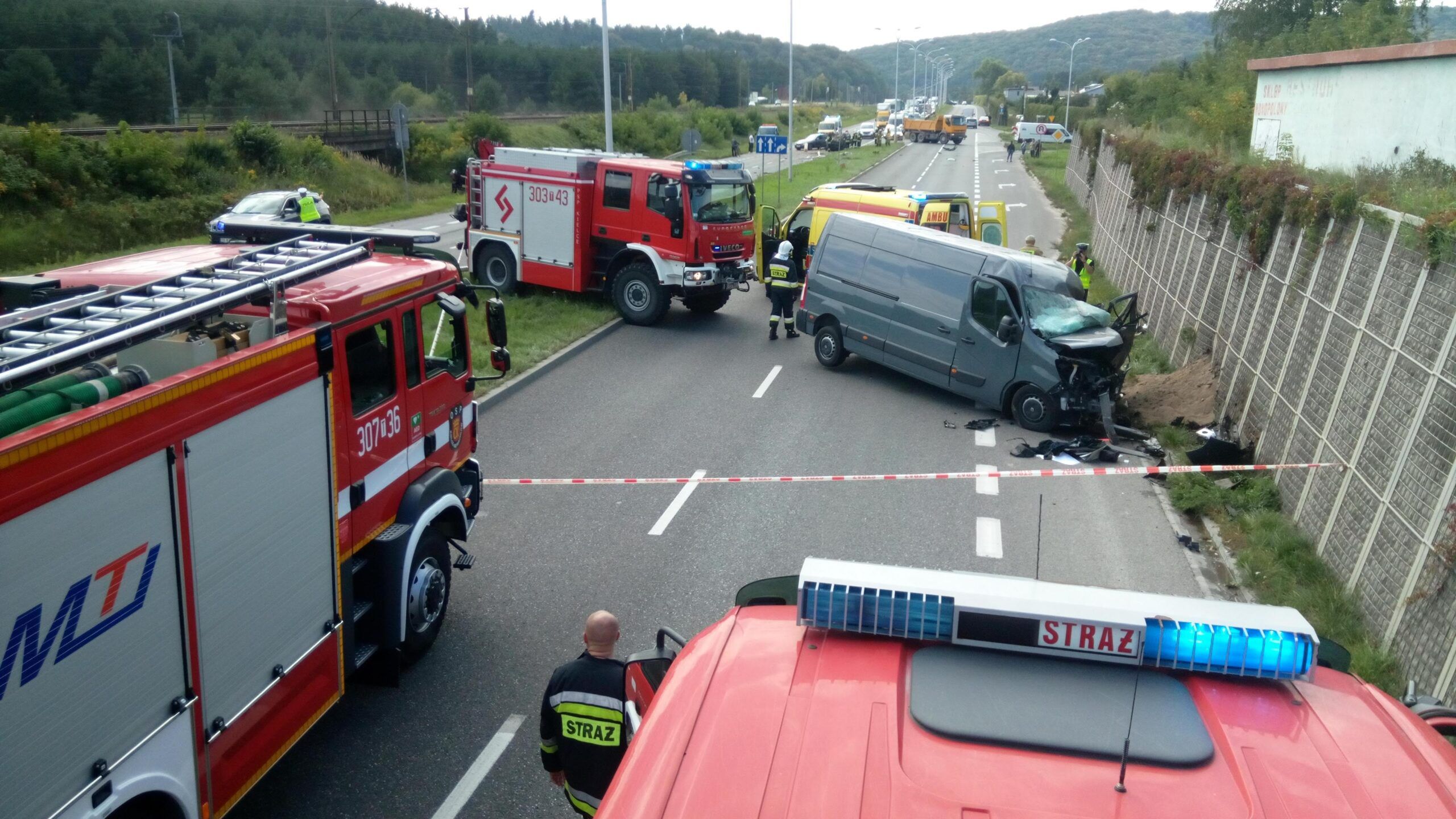 – Po przybyciu na miejsce zdarzenia stwierdzono, że doszło do zderzenia trzech samochodów osobowych. W wypadku brały udział łącznie 4 osoby. Działania straży pożarnej w pierwszej fazie akcji, po zabezpieczeniu miejsca zdarzenia polegały na wykonaniu dostępu umożliwiającego wydobycie kierującego pojazdem marki Renault Master. W asyście Pogotowia Ratunkowego wydobyto mężczyznę, który po przebadaniu został przewieziony do szpitala. Po zakończeniu czynności przez techników policyjnych pojazdy przeciągnięto na pobocze, udrażniając ruch w obu kierunkach. Pozostałości powypadkowe usunięto z jezdni na pobocze. Pojazdy odholowane zostały na parking policyjny – informuje mł. kpt. Daniel Czerwik, oficer prasowy Komendy Miejskiej Państwowej Straży Pożarnej w Kielcach.
